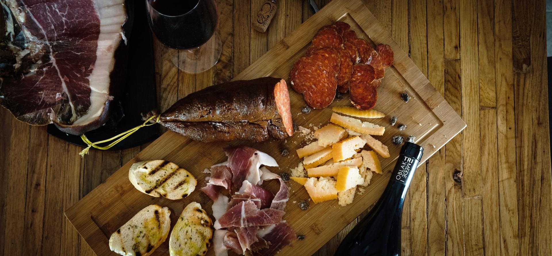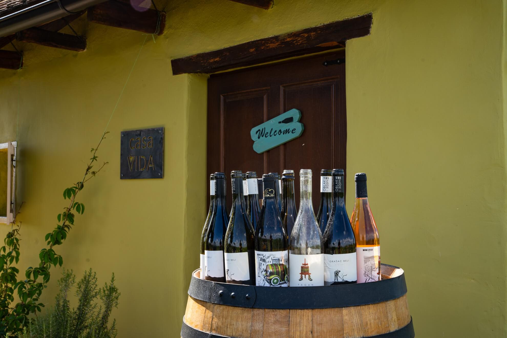 Obilazak i prezentacija vinarije i vinograda, proba 4 vina: 2 bela, roze i crveno uz sremačku platu (domaća šunka, kulen, slanina, sir, povrće, masline i pecivo)